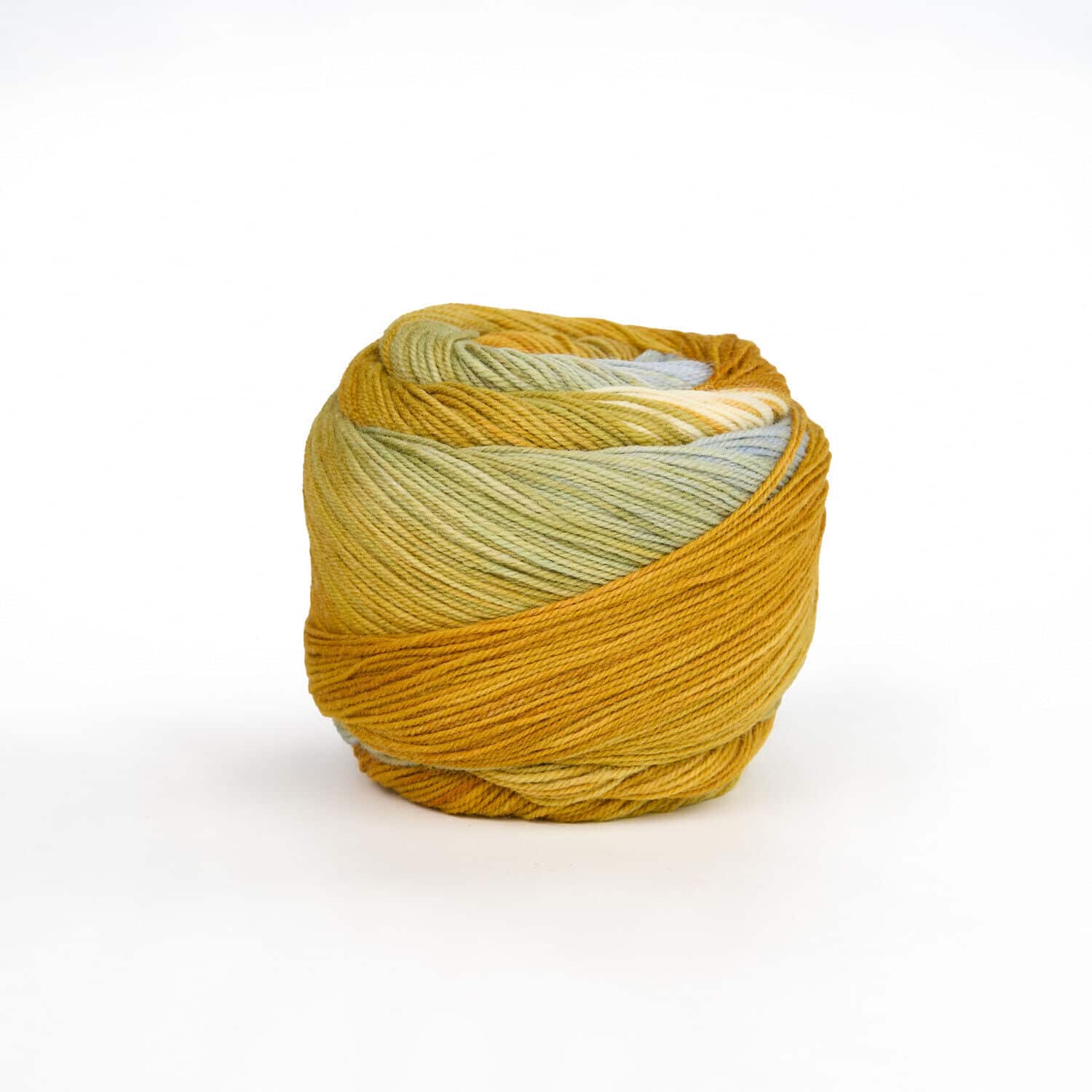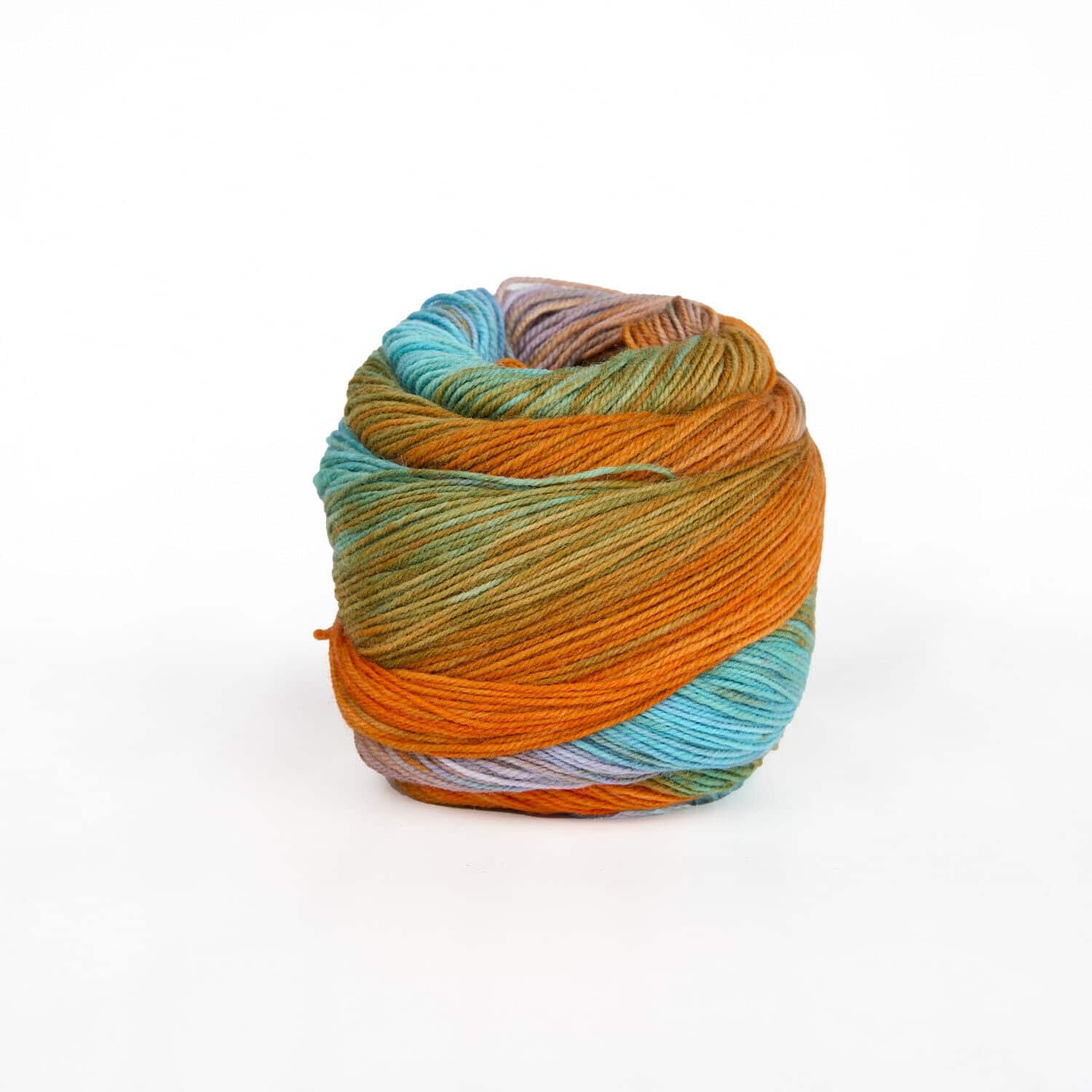 Ein einziger langer Farbverlauf zieht sich über eine Hälfte der Wolle bevor er sich wiederholt.
